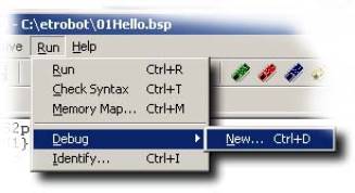 ไปที่เมนู Run / Debug / New ดังรูปด้านล่าง