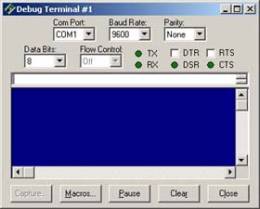 ขั้นตอนแรก เราต้องต่อขั้ว RS232 แบบ DB9 เข้าที่พอร์ต COM1 (ถ้าผู้อ่านต่อกับ COM2 ก็ได้เหมือนกัน แต่ว่าต้องกำหนดชนิดของพอร์ตให้ถูกต้อง)