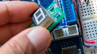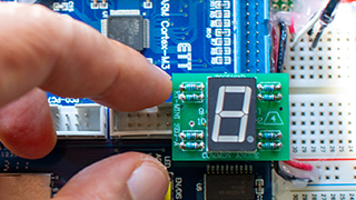 นั่นหมายความว่า หน้าที่ของเราคือสั่งเปิด/ปิดการเปล่งแสงของแอลอีดีและมันก็จะส่งผลให้ดูเป็นตัวเลขต่าง ๆ ได้ และคราวนี้จะสั่งอย่างไรแล้วหลอดติดสว่าง และสั่งอย่างไรแล้วดับล่ะ ... มาดูภาพการต่อวงจรของเจ้าตัวนี้กันครับ