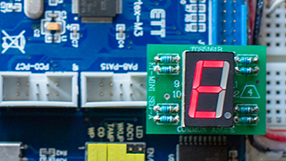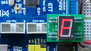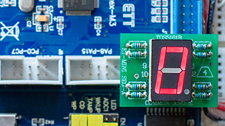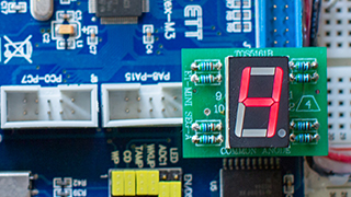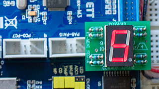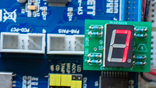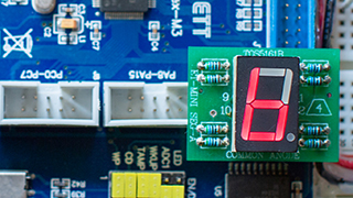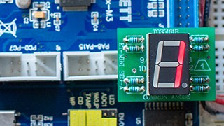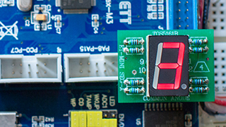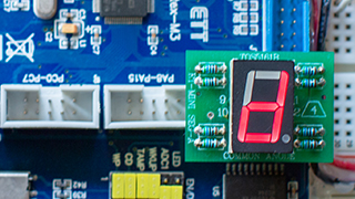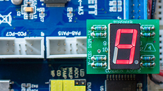 จะพบว่าบน 7-Segment มีแอลอีดีทั้งสิ้น 8 ดวง สำหรับเป็นส่วนต่าง ๆ เรียกชื่อว่า A, B, C, D, E, F และ DP ดังภาพอ้างอิงต่อไปนี้