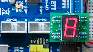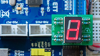 รูปร่างหน้าตาของ 7-Segment ที่เราเลือกใช้กันเป็น ET-mini SEG-A ใช้ 7-SEGMENT เบอร์ TOS-5161B COMMOND ANODE ต่อวงจรเข้ากับ PORT แบบ SINK กระแสซึ่งมีรูปร่างหน้าตาด้านหน้าและหลังดังภาพต่อไปนี้