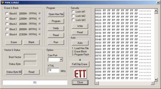 2 หน้าจอของโปรแกรม P89C51RD2.exe