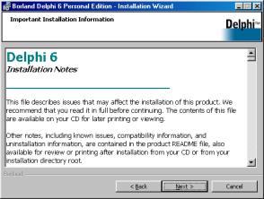 Delphi6 เพื่อดำเนินการติดตั้ง