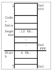 * 16 KB MEMORY : CODE + DATA - 12 KB , STACK - 4 KB