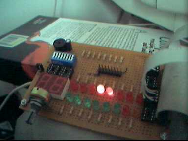 /* Filename: dio8255.c Author : Supachai Budsartij Date : 20 ก.ค. 2543 Compiler : Visual C++ Version 5 Hardware: ETT-DIO Card Platform : Win32 [Console] Tester : AMD K6-II 500MHz RAM 64MB Harddisk 1x10.2GB, 1x1.2GB VGA 3Dfx Banshee Sound Creative SB32 [ISA] Note : Drive LEDx8 on 8255 port A. */ #include <conio.h> #include <stdio.h> #define DIO_8255PA 0x300 #define DIO_8255PB 0x301 #define DIO_8255PC 0x302 #define DIO_8255CTRL 0x303 void delay_8255(short dly) { while (dly-- > 0); } void out_8255(int port_no, unsigned char data) { _outp((unsigned short)port_no, (int)data); delay_8255(10000); } void main(void) { unsigned char pattern[] = { 0x01,0x02,0x04,0x08,0x10,0x20,0x40,0x80,0x40, 0x20,0x10,0x08,0x04,0x02,0x01, 0x00,0x00,0x00,0x00, 0x81,0x42,0x24,0x18,0x24,0x42,0x81, 0x00,0x00,0x00,0x00, 0x18,0x24,0x42,0x81,0x42,0x24,0x18, 0x00,0x00,0x00,0x00, 0x80,0x40,0x20,0x10,0x08,0x04,0x02,0x01,0x02, 0x04,0x08,0x10,0x20,0x40,0x80, 0x00,0x00,0x00,0x00}; unsigned char max_patt = sizeof(pattern); unsigned char element = 0; out_8255(DIO_8255CTRL,0x80); while (!kbhit()) { out_8255(DIO_8255PA,pattern[element]); if (element == max_patt-1) { element = 0; } else { element++; } } out_8255(DIO_8255PA,0x00); }รูปของบอร์ดทดลองเป็นดังนี้