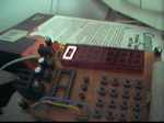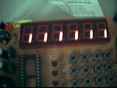 /* Filename : dio8255seg.c Author : Supachai Budsartij Date : 20 ก.ค. 2543 Compiler : Visual C++ Version 5 Hardware: ETT-DIO Card Platform : Win32 [Console] Tester : AMD K6-II 500MHz RAM 64MB Harddisk 1x10.2GB, 1x1.2GB VGA 3Dfx Banshee Sound Creative SB32 [ISA] Note : Drive Scan display [6 Digit 7-Segment] with Port A [data] and Port B [select]. */ #include <conio.h> #include <stdio.h> #define DIO_8255PA 0x300 #define DIO_8255PB 0x301 #define DIO_8255PC 0x302 #define DIO_8255CTRL 0x303 void delay_8255(short dly) { while (dly-- > 0); } void out_8255(int port_no, unsigned char data) { _outp((unsigned short)port_no, (int)data); } void main(void) { unsigned char pattern[] = {0x3F,0x06,0x5B,0x4F,0x66,0x6D};//,0x7D,0x07,0x7F,0x6F,0x77,0x7C,0x39,0x5E,0x79,0x71}; unsigned char select[] = {0xFE, 0xFD, 0xFB, 0xF7, 0xEF, 0xDF}; unsigned char max_patt = sizeof(pattern); unsigned char element = 0x00; unsigned char selected = 0x00; out_8255(DIO_8255CTRL,0x80); while (!kbhit()) { out_8255(DIO_8255PB,select[5-selected]); out_8255(DIO_8255PA,pattern[element]); if (selected == 0x05) { selected = 0x00; } else { selected++; } if (element == max_patt-1) { element = 0; } else { element++; } delay_8255(30000); // dependence with Machine speed. out_8255(DIO_8255PA,0x00); } out_8255(DIO_8255PA,0x00); }รูปของบอร์ดทดลองเป็นดังนี้