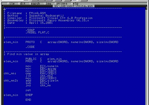 [ บทความ : ทดลอง Interface ภาษาแอสเซมบลี กับ Visual C++ 6 ] - หาค่าต่ำสุด |