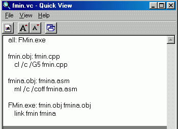 ห่างหายไปนานครับ กับตัวอย่างการเขียนโปรแกรมผ่าน PC หรือเน้นๆ เลยว่าเป็นพวก Intel 80x86/Pentium น่ะแหละครับ ... สัปดาห์นี้ เรามาลองเขียนโปรแกรมภาษาแอสเซมบลี เพื่อติดต่อกับ C++ ที่เขียนด้วย Visual C++ Version 6 .. ตัวอย่างโปรแกรมแรก จะเป็นการหาค่าต่ำสุดจากใน array ที่เราส่งจาก C++ ไปยัง ASM แล้ว ให้ภาษาแอสเซมบลี ส่งค่าต่ำสุดกลับมา ... ก่อนอื่น มาดูกันก่อนว่า จะเขียนโปรแกรมตามบทความนี้ได้ ควรจะมีเครื่องมืออะไรบ้าง ...