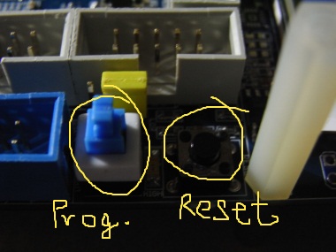 รูปที่ 12 ปุ่มรีเซ็ต และสวิตช์สำหรับเข้าโหมดโปรแกรมชิพ |