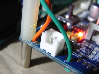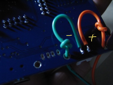 เลยต้องปรับปรุงบอร์ดเล็กน้อย ด้วยการต่อสายไฟเพิ่มเข้าไป 2 เส้น ดังรูปที่ 8 และใช้บอร์ดไมโครฯ รุ่น์ |