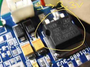 ปัญหาของผมก็คือ บอร์ดรุ่นนี้ใช้ไฟ 5 VDC เพื่อแปลงเป็น 3.3VDC (รูปที่ 7) และขั้วต่อคนละแบบกับที่ผมมี |