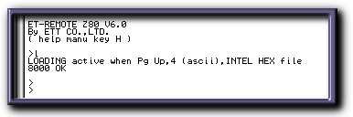; ; Filename : LDex.asz ; Author : Supachai Budsaratij (raek@se-ed.net) ; Date : Dec 5, 2000 ; Hardware : ET-Board V6 (Z80 Mode) ; ; INCL "etv6.inz" ; Inlude header for ET-V6 ; ; filename : etv6.inz ; assembler : az80 ; author : Supachai Budsaratij (raek@se-ed.net) ; hardware : et-board 6 (Z-80 mode) ; date : October 12,2000 ; ; --- MEMORY ; 8000 UMEM_ORG EQU 08000h ; User RAM start bdff UMEM_END EQU 0BDFFh ; User RAM end c000 XMEM_ORG EQU 0C000h ; Expand RAM end dfff XMEM_END EQU 0DFFFh ; Expand RAM end ; --- I/O ; 0000 S8255_PA EQU 00h ; System 8255 port A 0001 S8255_PB EQU 01h ; System 8255 port B 0002 S8255_PC EQU 02h ; System 8255 port C 0003 S8255_CT EQU 03h ; System 8255 control port ; 0020 U8255_PA EQU 20h ; User 8255 port A 0021 U8255_PB EQU 21h ; User 8255 port B 0022 U8255_PC EQU 22h ; User 8255 port C 0023 U8255_CT EQU 23h ; User 8255 control port ; 004d SCN_INP EQU 4Dh ; SCN2681 - Input port (Switch) 004e SCN_SEO EQU 4Eh ; SCN2681 - Set output port (LED) 004f SCN_REO EQU 4Fh ; SCN2681 - Reset output port (LED) ; 0060 CLCD_WC EQU 60h ; Character LCD write command 0061 CLCD_RC EQU 61h ; Character LCD read command 0062 CLCD_WD EQU 62h ; Character LCD write data 0063 CLCD_RD EQU 63h ; Character LCD read data ; 0064 GLCD_WC1 EQU 64h ; Graphics LCD write command (Page 1) 0065 GLCD_RC1 EQU 65h ; Graphics LCD read command (Page 1) 0066 GLCD_WD1 EQU 66h ; Graphics LCD write data (Page 1) 0067 GLCD_RD1 EQU 67h ; Graphics LCD read data (Page 1) ; 0068 GLCD_WC2 EQU 68h ; Graphics LCD write command (Page 2) 0069 GLCD_RC2 EQU 69h ; Graphics LCD read command (Page 2) 006a GLCD_WD2 EQU 6Ah ; Graphics LCD write data (Page 2) 006b GLCD_RD2 EQU 6Bh ; Graphics LCD read data (Page 2) ; 000a DD EQU 0AH 0020 EE EQU 20H a000 NN EQU 0A000H 000a N EQU 0AH 8000 ORG UMEM_ORG ; Start at UMEM_ORG 8000 main ; --- My code here 8000 3e a0 LD A, 0A0h 8002 06 ac LD B, 0ACh 8004 4f LD C, A 8005 02 LD (BC), A 8006 70 LD (HL), B 8007 dd 71 0a LD (IX + DD), C 800a dd 36 0a 0a LD (IX + DD), N 800e fd 70 0a LD (IY + DD), B 8011 fd 36 0a 0a LD (IY + DD), N 8015 32 00 a0 LD (NN), A 8018 ed 43 00 a0 LD (NN), BC 801c 0a LD A, (BC) 801d dd 7e 0a LD A, (IX + DD) 8020 fd 7e 0a LD A, (IY + DD) 8023 3a 00 a0 LD A, (NN) 8026 7f LD A, A 8027 dd 2a 00 a0 LD IX, (NN) 802b dd 21 00 a0 LD IX, NN 802f fd 2a 00 a0 LD IY, (NN) 8033 fd 21 00 a0 LD IY, NN ; ---End of program 8037 76 HALT 8038 ENDเอาล่ะ เราจะมา debug โปรแกรมกันครับ ... เริ่มต้นจากการโหลดโปรแกรมเข้าบอร์ด ดังรูปต่อไปนี้เลยครับ