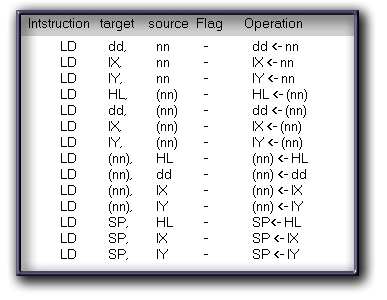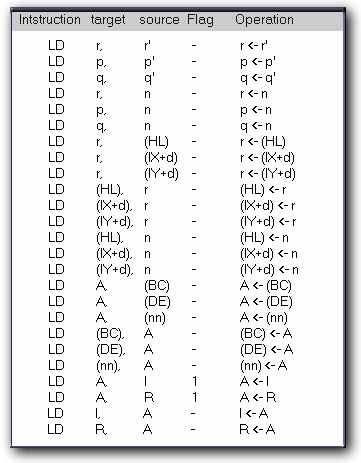 หลังจากหายหน้าหายตาไปนานกับ บทความเกี่ยวกับ Z80 กลับมาคราวนี้เรามาเริ่มกันที่เรื่อง คำสั่ง LD กันเลยครับ ... LD เป็นคำสั่งที่ทำหน้าที่โอนค่าจากที่หนึ่งไปเก็บเอาไว้ ณ อีกที่หนึ่ง รูปแบบหลักๆ ของ LD เป็นดังนี้LD ปลายทาง,ต้นทาง LD (ปลายทาง), ต้นทาง LD ปลายทาง, (ต้นทาง)นั่นหมายความว่า เมื่อเราเขียนเป็นสัญลักษณ์แทนการทำงาน ก็จะได้เป็นดังนี้ปลายทาง <- ต้นทาง (ปลายทาง) <- ต้นทาง ปลายทาง <- (ต้นทาง)หมายเหตุปลายทาง มักเป็นรีจิสเตอร์