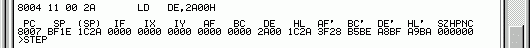 ในการ trace ครั้งที่ 3 จะได้ว่า คำสั่งที่เจอคือ LD DE,2A00h จึงทำให้รีจิสเตอร์ DE เก็บค่า 2A00h เอาไว้ ดังรูป 6-4