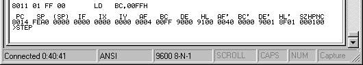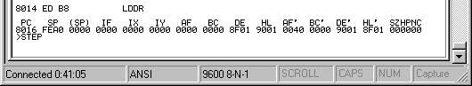 ทดลองเรียก LDD จะเห็นว่าค่าของ BC, DE, และ HL จะลดลง (ถ้าเป็น LDI ค่า DE กับ HL จะเพิ่มขึ้น)