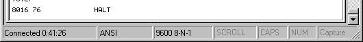 ; ; Filename : TLDEx2.asz ; Author : Supachai Budsaratij (raek@se-ed.net) ; Date : Jan 18, 2000 ; Hardware : ET-Board V6 (Z80 Mode) ; CP-jr180 ; ET-Board V5 ; ET-Board V3.5 New Power ; ; ; INCL "etv6.inz" ; Inlude header for ET-V6 ; INCL "etv35.inz" ; Inlude header for ET-V3.5 INCL "jr180.inz" ; Inlude header for CP-jr180 ; ; filename : jr180.inz ; assembler : az80 ; author : Supachai Budsaratij (raek@se-ed.net) ; hardware : CP-jr180 Plus ; date : Dec 5, 2000 ; ; Note : Must use jr180 debugger. ; ; --- MEMORY (Logical address) ; 8000 UMEM_ORG EQU 08000h ; User RAM start (10000h - Physical address) ffff UMEM_END EQU 0FFFFh ; User RAM end (17FFFh - Physical address) ; ; --- MEMORY (Physical address) 0000 P_UMEM_ORG EQU 10000h 7fff P_UMEM_END EQU 17FFFh 8000 P_XMEM_ORG EQU 018000h ; Expand RAM end ffff P_XMEM_END EQU 01FFFFh ; Expand RAM end ; --- I/O ; 0080 U8255_PA EQU 80h ; User 8255 port A 0081 U8255_PB EQU 81h ; User 8255 port B 0082 U8255_PC EQU 82h ; User 8255 port C 0083 U8255_CT EQU 83h ; User 8255 control port ; ; --- for Character LCD 00c0 CLCD_WC EQU 0C0h ; Write instruction to LCD 00c2 CLCD_WD EQU 0C2h ; Write data to CG or DD RAM 00c4 CLCD_RD EQU 0C4h ; Read busy flag and address ; --- for Graphics LCD 00c0 GLCD_WC EQU 0C0h ; Write instruction to LCD (Page1) 00c1 GLCD_WC2 EQU 0C1h ; Write instruction to LCD (Page2) 00c2 GLCD_WD EQU 0C2h ; Write data to CG or DD RAM (Page1) 00c3 GLCD_WD2 EQU 0C3h ; Write data to CG or DD RAM (Page2) 00c4 GLCD_RD EQU 0C4h ; Read busy flag and address (Page1) 00c5 GLCD_RD2 EQU 0C5h ; Read busy flag and address (Page2) ; 00e0 WATCH_DOG EQU 0E0h 8000 ORG UMEM_ORG ; Start at UMEM_ORG 8000 main: ; --- My code here ; Load data from 9100h to 9001h keep into 9000h to 8F01h 8000 11 00 90 LD DE,09000h ; DE point to target address. 8003 21 00 91 LD HL,09100h ; HL point to source address. 8006 01 ff 00 LD BC,0FFh ; BC = counter. 8009 ed a8 LDD ; Load data from (HL) and keep into (DE). ; Do until the value of BC equal to 0. ; (This instruction to BC times.) ; 800b 11 00 90 LD DE,09000h 800e 21 00 91 LD HL,09100h 8011 01 ff 00 LD BC,0FFh 8014 ed b8 LDDR ; Similar to LDD but repeat until ; Z flag equal to 1 or BC equal to 0. ; ; ---End of program 8016 76 HALT 8017 END 00c4 CLCD_RD 00c0 CLCD_WC 00c2 CLCD_WD 00c4 GLCD_RD 00c5 GLCD_RD2 00c0 GLCD_WC 00c1 GLCD_WC2 00c2 GLCD_WD 00c3 GLCD_WD2 7fff P_UMEM_END 0000 P_UMEM_ORG ffff P_XMEM_END 8000 P_XMEM_ORG 0083 U8255_CT 0080 U8255_PA 0081 U8255_PB 0082 U8255_PC ffff UMEM_END 8000 UMEM_ORG 00e0 WATCH_DOG 8000 mainส่วนรายละเอียดของไฟล์ฐานสิบหก ก็จะเป็นดังนี้ครับ