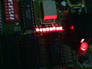 คราวนี้ก็เป็นเรื่องของตัวอย่างบ้างล่ะ ... ปัญหาของผมตอนนี้ก็คือว่า พอผมเปิดคู่มือบอร์ดของ ET-V6, ET-V4 และ ET-V3.5 นั้นมีการออกแบบตำแหน่งของพอร์ตที่ติดต่อกับ LED (Flag LED) ไม่เหมือนกัน ... อืม ... ผมเองต้องการเขียนโปรแกรม สำหรับ สั่งให้หลอด LED บนบอร์ดนั้น ติด/ดับ สลับกันไปเรื่อยๆ ... เอาล่ะ เขียนโปรแกรมเป็น 3 ตัวก็ได้ ... แต่ อ้าว ... บอร์ด ET-V3.5 ของ ผมมีอันเป็นไปเสียแล้วครับ ... (เศร้าๆ ของมันเก่ามากน่ะครับ มันก็เลยเสีย แบบว่าลาย print มันพองมากๆ อาจจะทำให้เกิด noise เวลา download โปรแกรมมันเลยแน่นิ่งไปเลย ....) เอาเป็นว่า ผมลงตัวอย่างโปรแกรม 2 ตัวล่ะกันครับ เป็นของ ET-V6 กับ ET-V4 มาดูโปรแกรม และผลลัพธ์ของ ET-V6 กันก่อนครับ