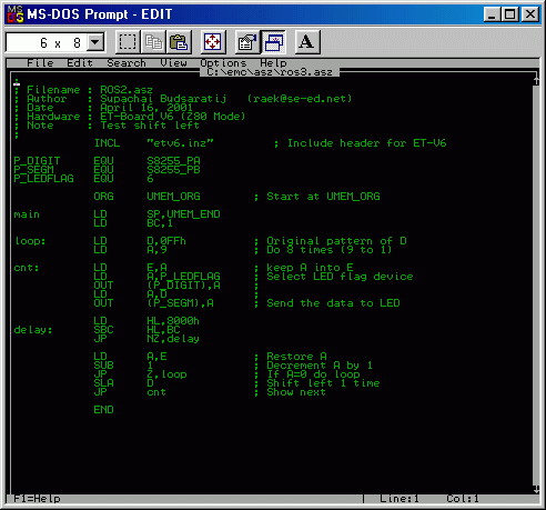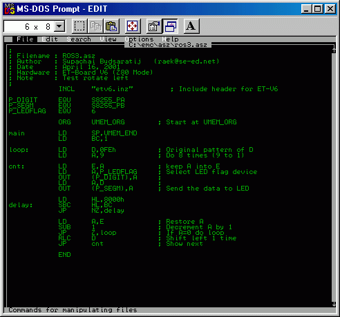 ตัวอย่างนี้เป็นการปรับปรุง โปรแกรมที่ติดต่อกับ LED ครับ ... ผมใช้การเลื่อนบิตไปทางซ้าย สำหรับการเปลี่ยน รูปแบบการ แสดงผล อยากทราบไหมครับว่า ผลการทำงานเป็นอย่างไร ... ลองพิมพ์โปรแกรมต่อไปนี้แล้ว run ดูครับ