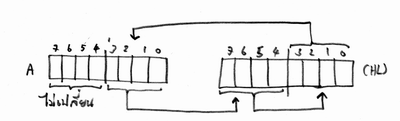 คำสั่งนี้เป็นการหมุนบิตไปทางซ้ายครับ แต่ว่าทำงานกับตัวเลขแบบ BCd โดยการทำงานนั้น จะอาศัย A กับ (HL) โดย (HL) เป็นข้อมูลที่เราต้องการ ส่วน A นั้นใช้ประกอบการหมุน ... หลักการทำงานเป็นรูปต่อไปนี้ครับ