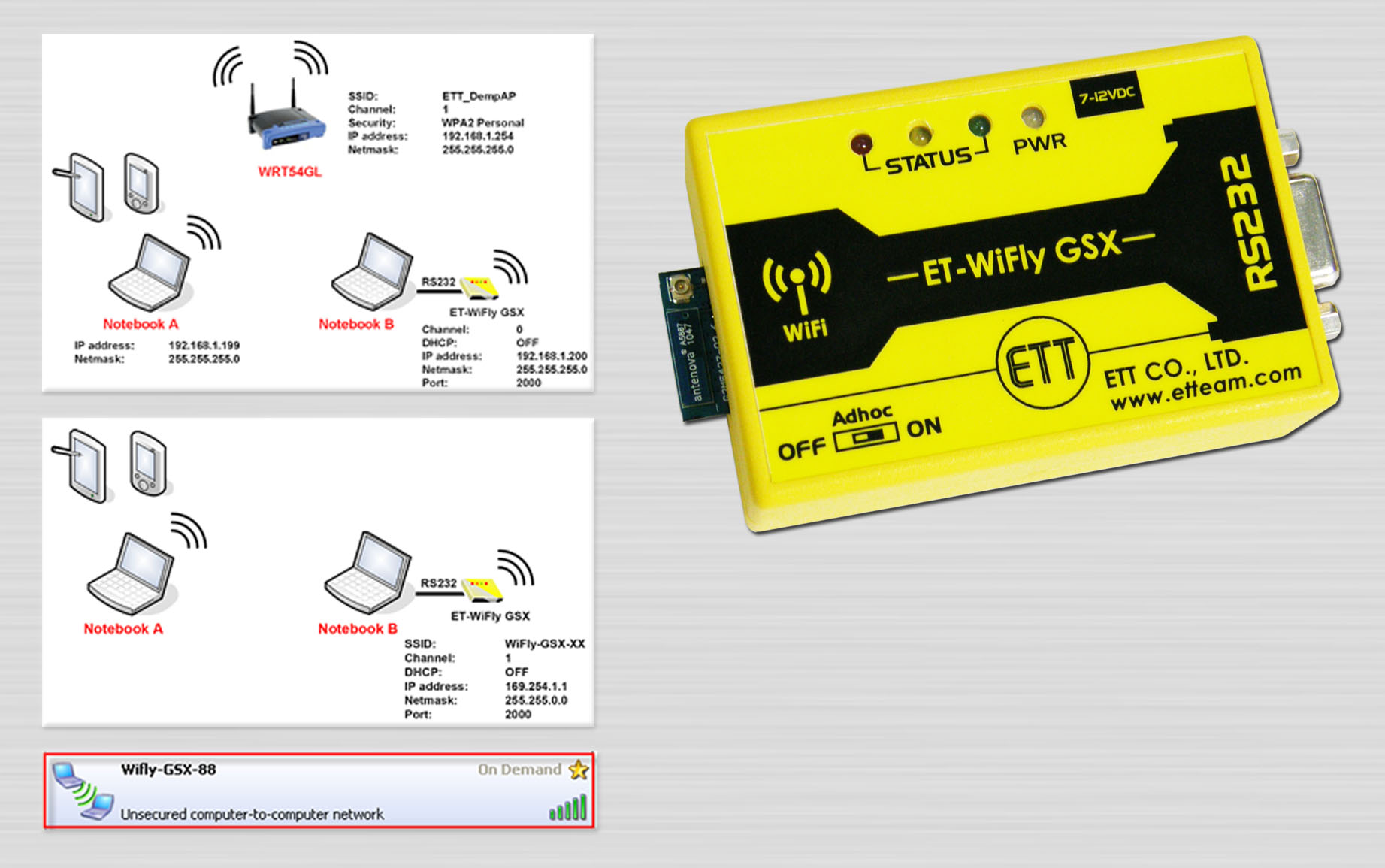 ET-WiFly GSX เป็นอุปกรณ์ที่ใช้แปลงข้อมูลระหว่างการติดต่อแบบ RS232 ให้เป็นแบบ Wireless LAN โดยในชุดจะประกอบด้วยบอร์ด โมดูล WiFly พร้อมเสาอากาศ มีให้ครบไม่ต้องซื้ออุปกรณ์มาต่อเพิ่มอีก ช่วยลดความยุ่งยากสำหรับผู้ใช้งานที่ต้องการสื่อสารกับระบบ Wireless LAN กับ RS232 PORT โดยผู้ใช้ไม่จำเป็นต้องเสียเวลาศึกษา หรือเขียนโปรแกรมติดต่อเอง |