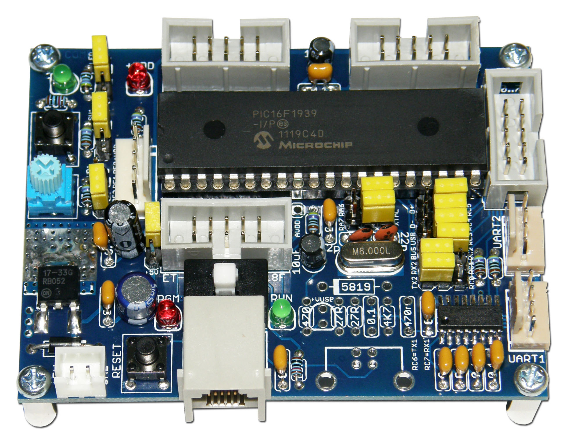 - 1 ช่อง สำหรับ SOFTWARE UART โดยใช้ PIN RC0 (TX2) และ RC1 (RX2) พร้อม JUMPER สำหรับเลือกใช้งานเป็น PORT อิสระ |
