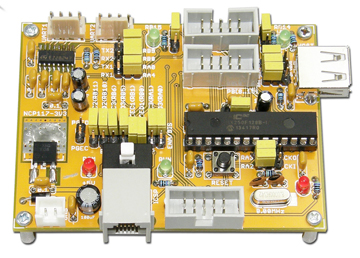 | • ขั้วต่อ RJ11, ICSP สำหรับใช้เชื่อมต่อกับเครื่องโปรแกรม และดีบัก ตามมาตรฐาน ICSP ของ MICROCHIP ใช้กับ ICD3 | ||||||