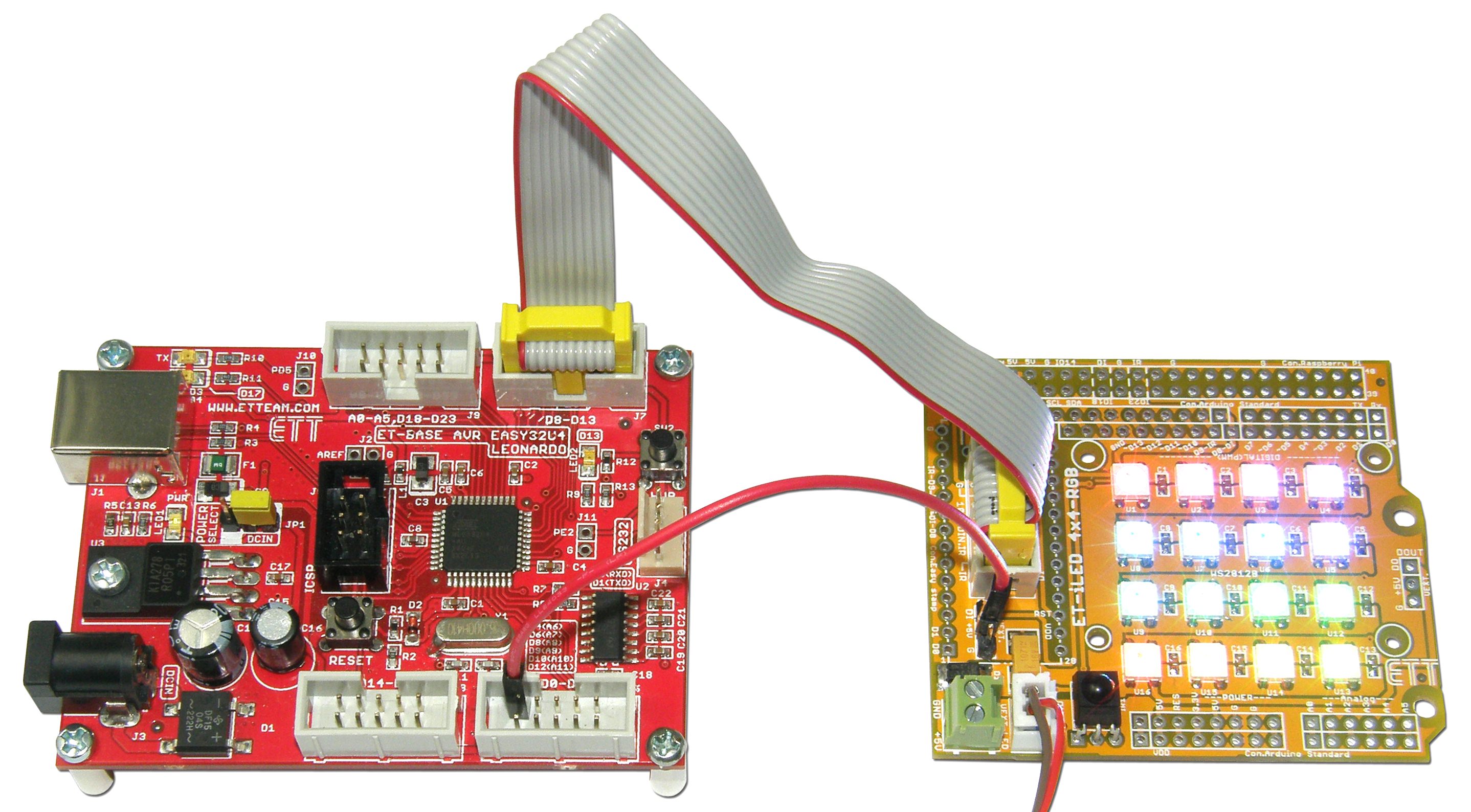 | [*] บอร์ด ET-iLED 4x4-RGB มีขั้วต่อหลายๆ รูปแบบ ทำให้สามารถต่อใช้งานกับบอร์ดต่างๆ ได้ทาง | |||||||||||