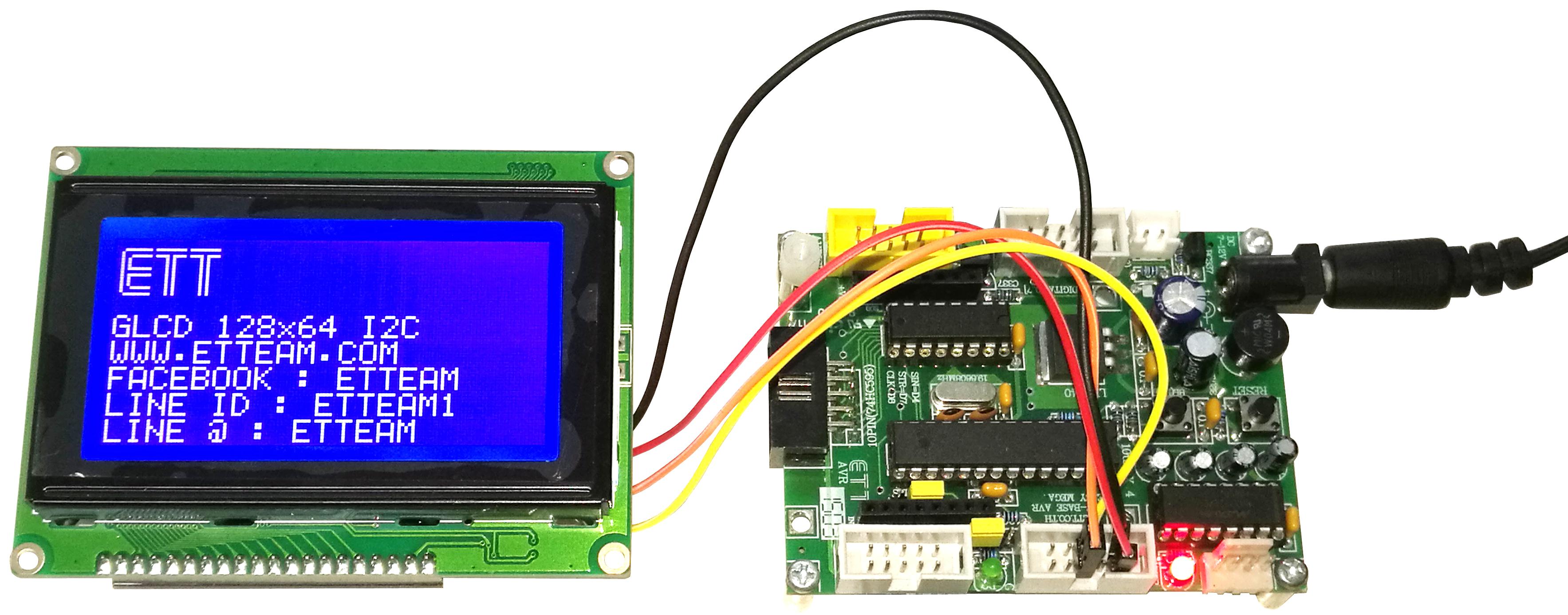 | รับข้อมมูลการทำงาน GLCD ทาง I2C ง่าย และสะดวกในการต่อใช้งาน พร้อม ตัวอย่างโปรแกรมและ | |||||||||||