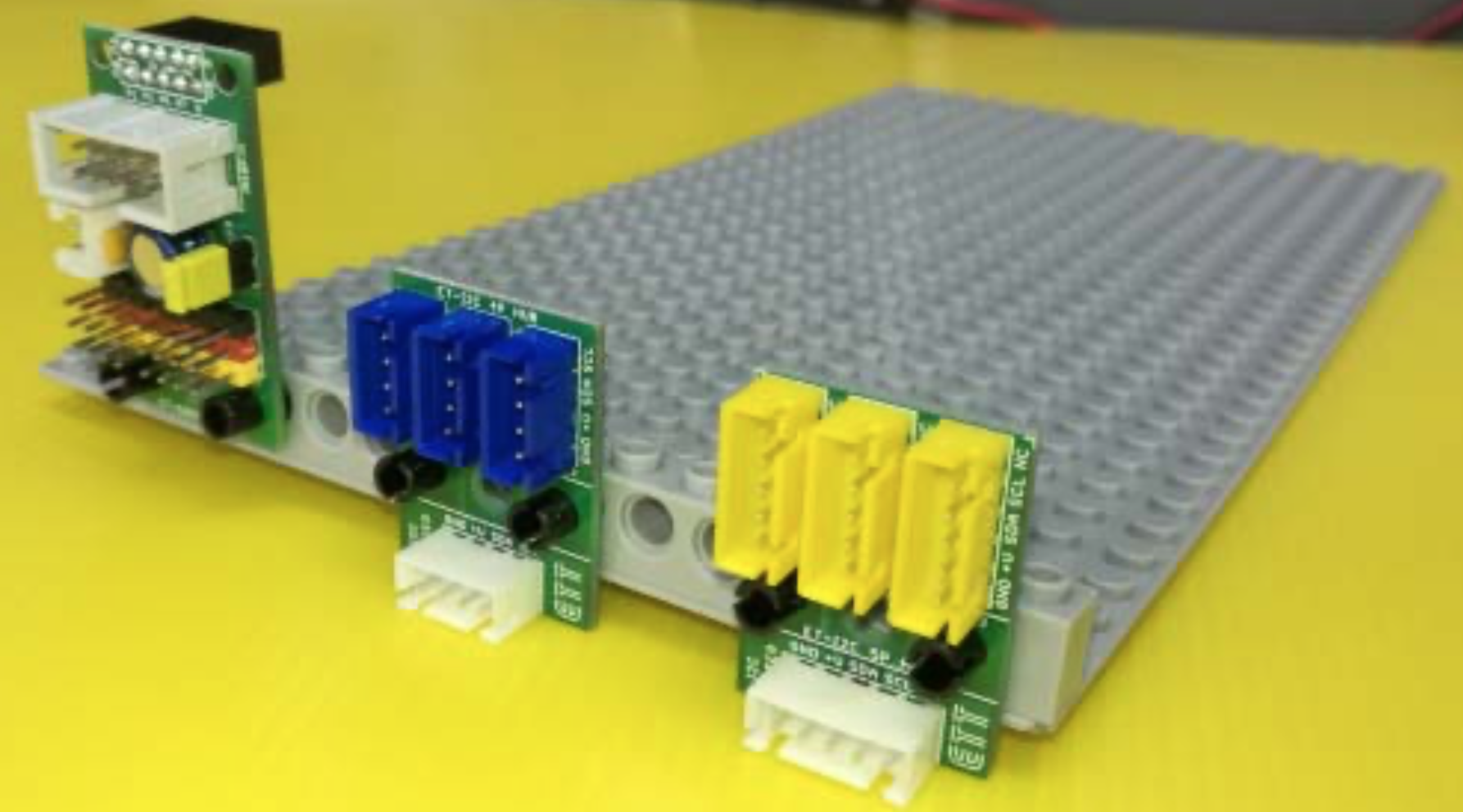 ตัวอย่างการต่อใช้งาน TECHNIC BRICKS 1x14 (หรือ TECHNIC BRICKS 1x10) เข้ากับ TECHNIC PIN WITH FRICTION, ET-CONV 3P TO 10P, ET-I2C 4P HUB, ET-I2C 5P HUB