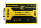 ET - RS232 OPTOISOLATION ... เป็นอุปกรณ์ที่ช่วยแก้ไขปัญหาการติดตั้ง PORT RS232 ของเครื่องมือหรือคอมพิวเตอร์ต่างๆ เข้ากับ MODEM หรืออุปกรณ์ RS232 ที่ต่อเข้าด้วยกัน ซึ่งมีปัญหาในเรื่องของสัญญาณ GND ที่แตกต่างระดับกัน ซึ่งจะทำให้อุปกรณ์ต่อพ่วงนั้นๆ เสียหายได้ นอกจากนี้ยังป้องกันปัญหาความเสียหายที่เกิดกับไฟผิดปกติหรือฟ้าผ่าเข้ามายังระบบได้ โดยป้องกันไม่ให้เกิดความเสียหายหมดทั้งระบบ