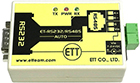 ET - RS422/485 ... เป็นชุด ADAPTER เปลี่ยนสัญญาณการรับส่งข้อมูลจากระดับสัญญาณ RS232C เป็นแบบ RS422 หรือ RS485 หรือจาก RS422/485 เป็น RS232C ซึ่งจะทำให้การรับส่งด้วย RS422 หรือ 485 นี้ไปได้ไกลกว่า RS232 มาก โดยสามารถรับส่งได้ไกลถึง 4000 ฟุตและยังสามารถต่อแบบ MULTIPOINT เข้าด้วยกันได้อีกด้วย