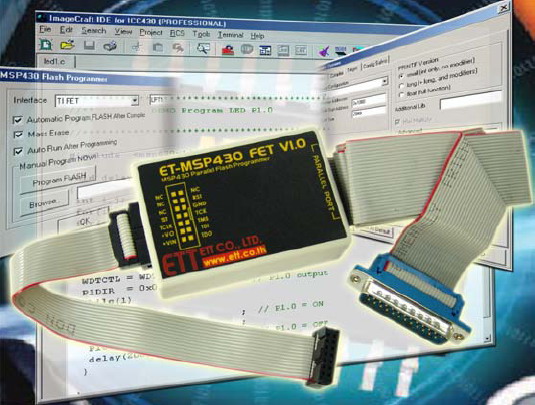 - ชุด ET-MSP430 FET V1 ประกอบด้วย ... ตัวบอร์ดพร้อมกล่อง ET- MSP430 FET V1 พร้อมสายต่อเข้า PRINTER และเข้าบอร์ด MSP430 , แผ่น CD - ROM โปรแกรม |