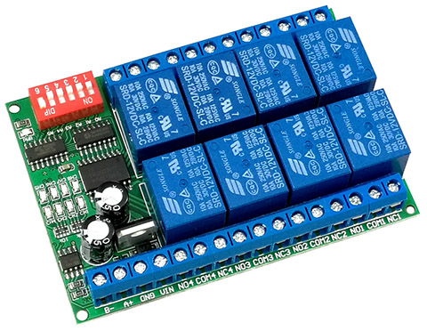MODBUS RTU RELAY8 ...เป็นชุด RELAY ON/OFF จำนวน 8 ตัว ในบอร์ดรับคำสั่งทำงานผ่านทาง |