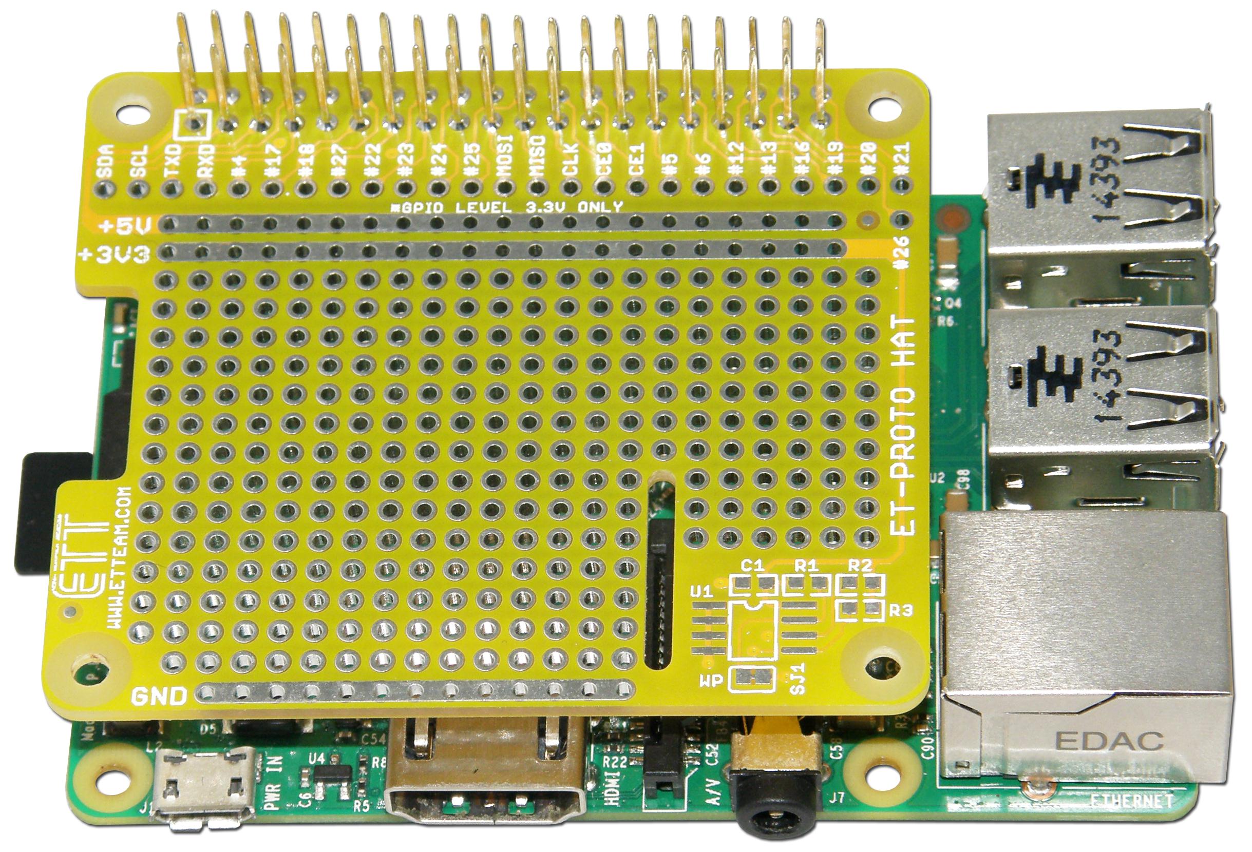 ET-PROTO HAT หรือ PCB เอนกประสงค์ HAT (HARDWARE ATTACHED ON TOP) ออกแบบมาใช้งานกับบอร์ด |