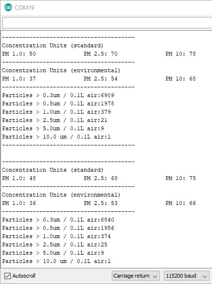 | ดูดอากาศเข้ามา PMS5003 สามารถวัดค่าอนุภาคฝุ่นละอองขนาดเล็กได้ ตั้งแต่ PM1.0, PM2.5 และ PM10 | |||||||||