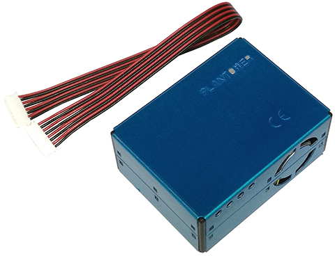 | โดยใช้หลักการของการส่งแสง LASER ฉายส่องกับ อนุภาคในอากาศที่ลอยอยู่ โดยใช้ พัดลมขนาดเล็ก | |||||||||